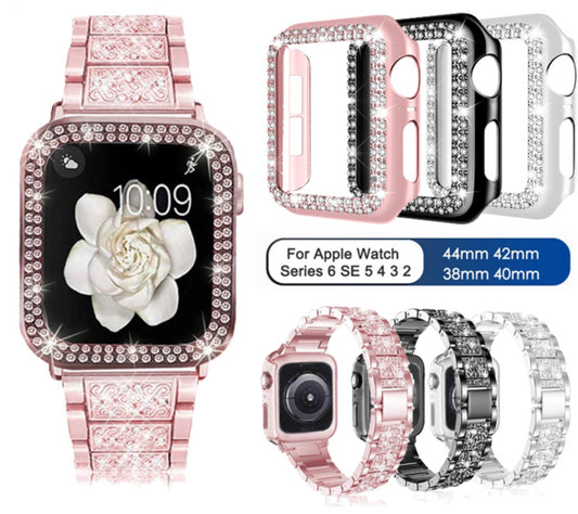 Luxury Bling Case and Strap Slim Mesh Metal Strap for Apple Watch
