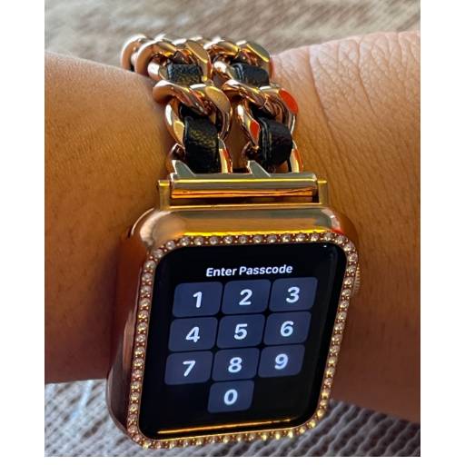 Luxury Link Chain with Leather strap and Case for Apple Watch